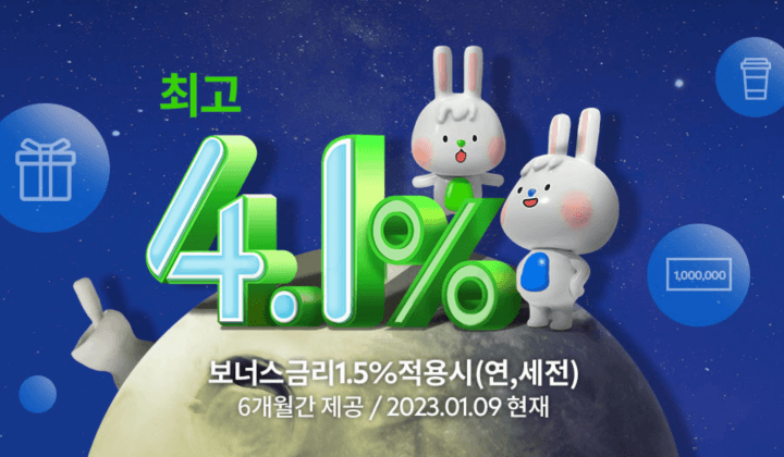 1. 금리 : 최대 4.1% (현재 보너스 금리 이벤트 중)